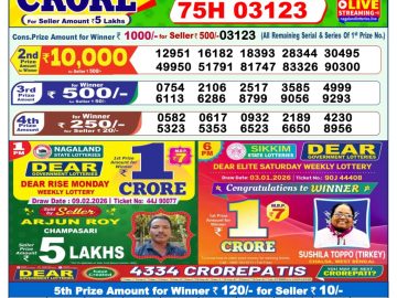 Dear lottery 1 PM Results 09.02.2026