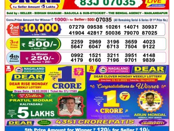 Dear lottery 8 PM Results 16.02.2026