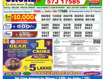 Dear lottery 6 PM Results 15.02.2026