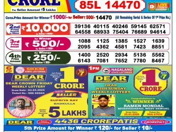 Dear lottery 1 PM Results 05.04.2026