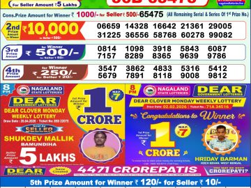 Dear lottery 1 PM Results 20.04.2026