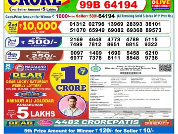 Dear lottery 1 PM Result 26.04.2026