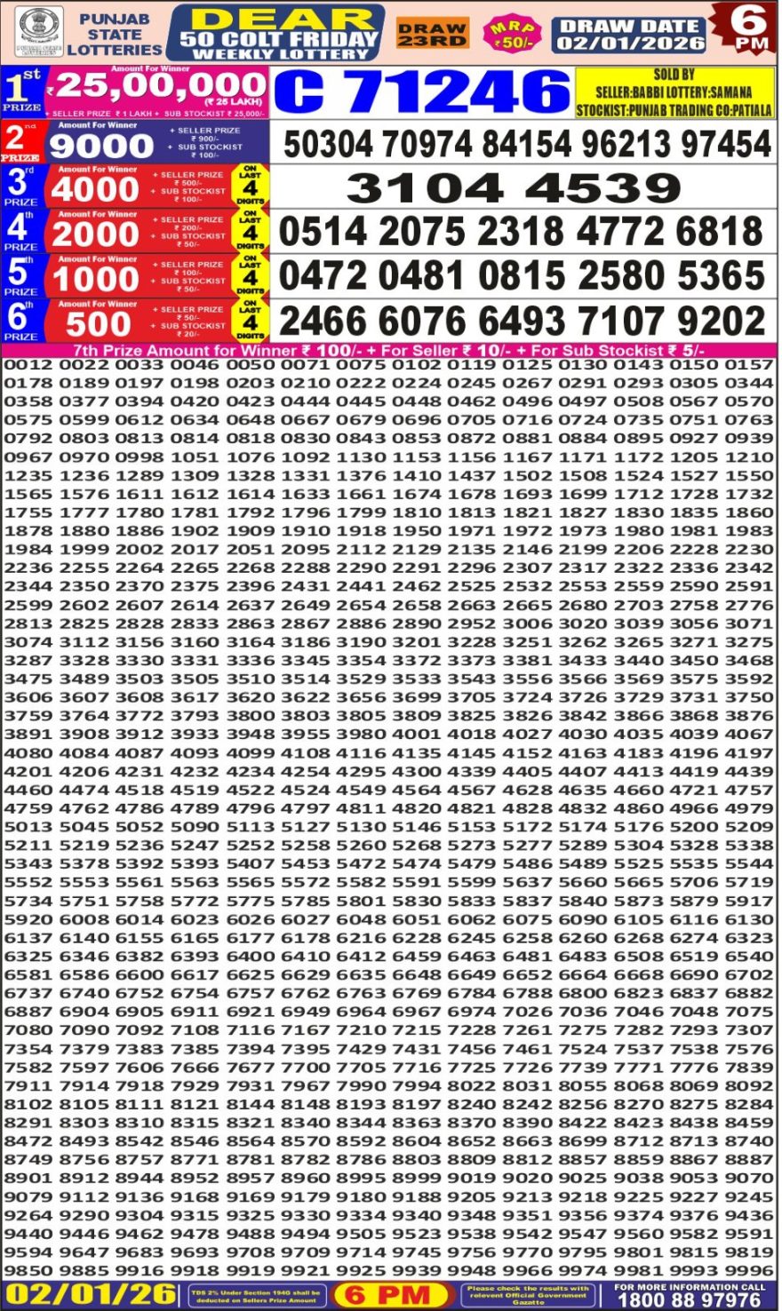 Dear 50 lottery Result 02.01.2026 6PM 02.01.2026 Leave a Comment on Dear 50 lottery Result 02.01.2026 6PM Share: XFacebookPinterestLinkedin