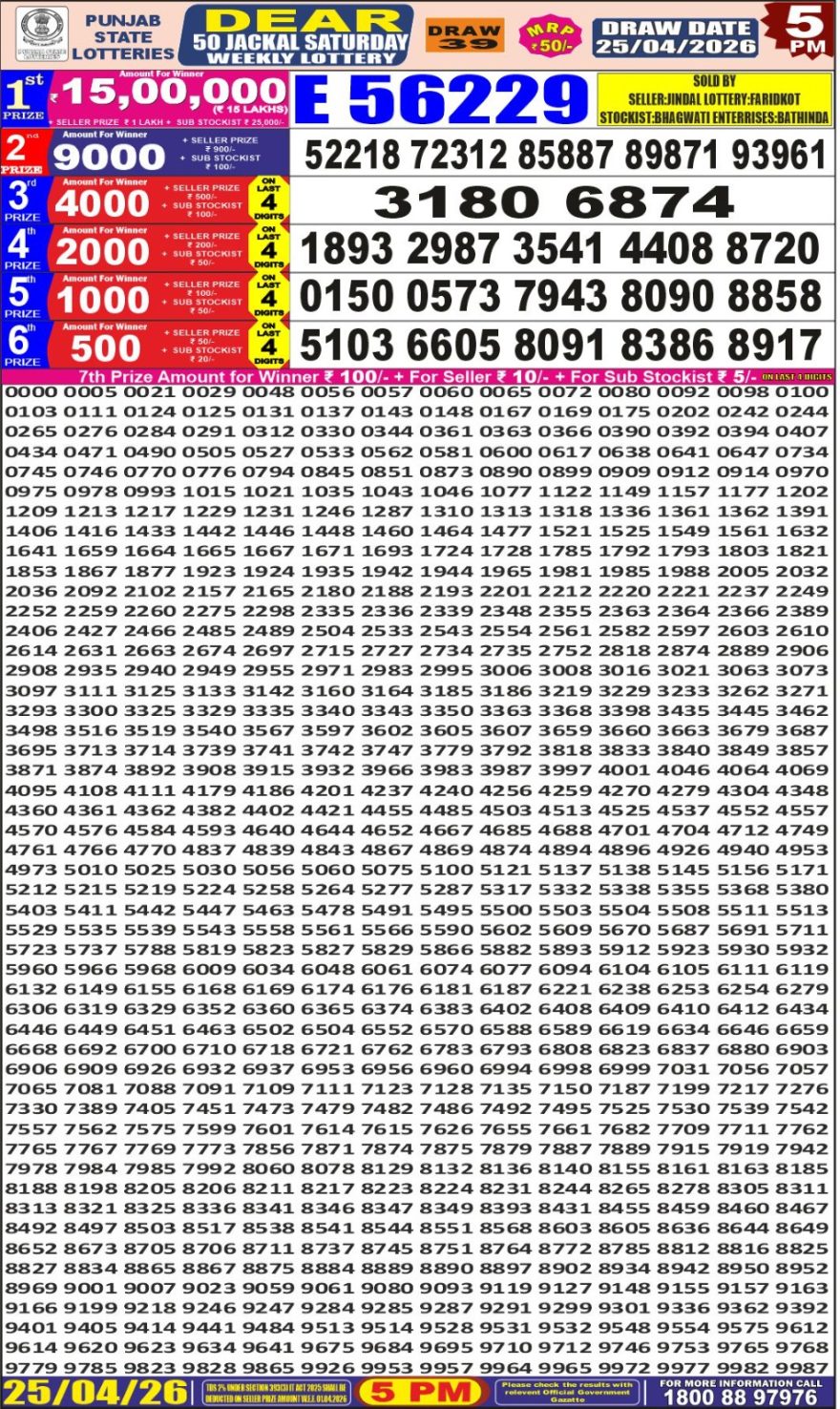 Dear 50 lottery Result 25.04.2026 5PM 25.04.2026 Leave a Comment on Dear 50 lottery Result 25.04.2026 5PM Share: XFacebookPinterestLinkedin