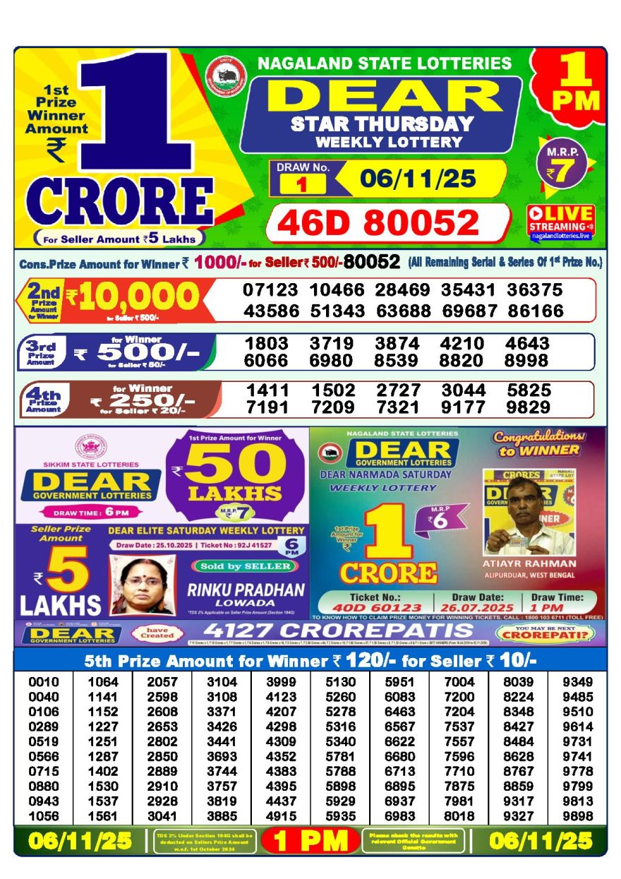 Dear lottery 1 PM Results 06.11.2025 06.11.2025 Leave a Comment on Dear lottery 1 PM Results 06.11.2025 Share: XFacebookPinterestLinkedin