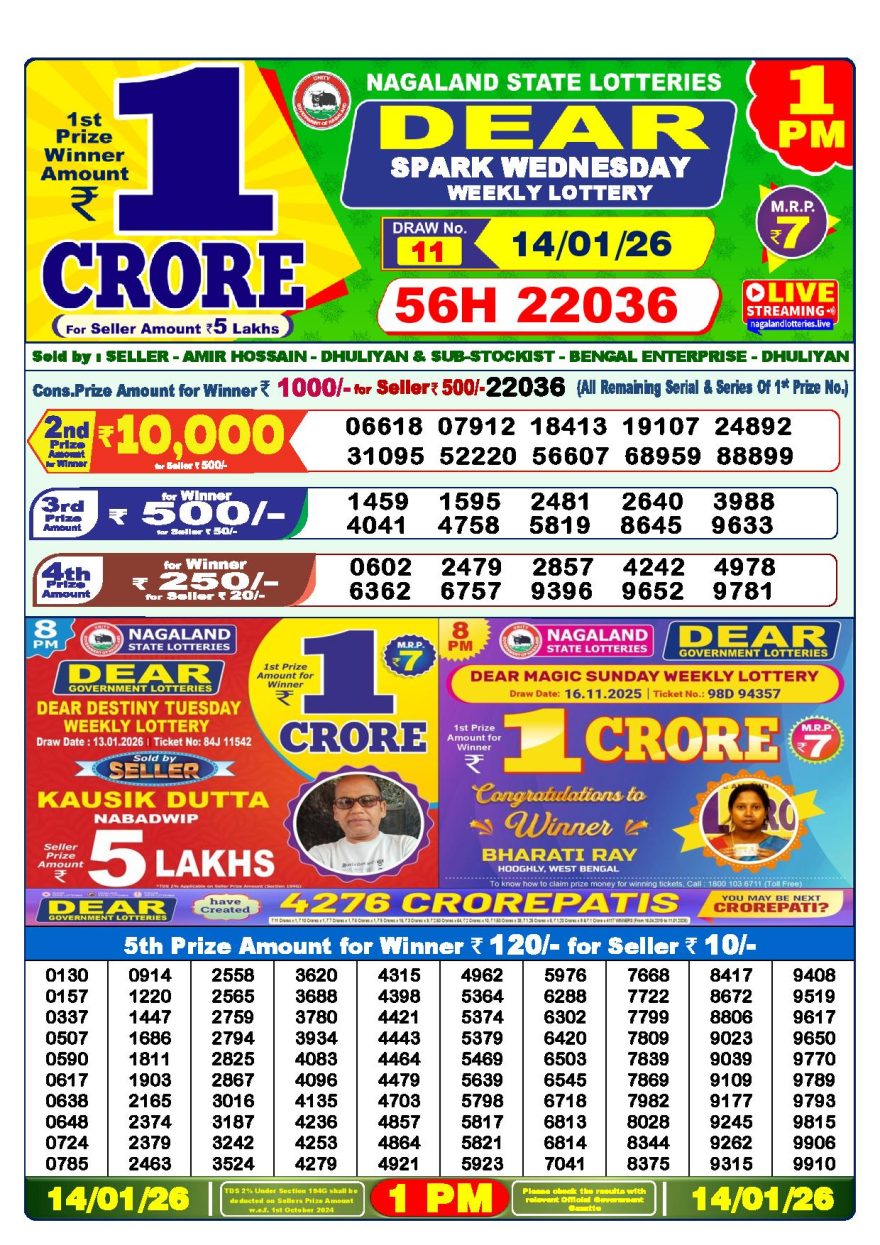 Dear lottery 1 PM Results 14.01.2026 14.01.2026 Leave a Comment on Dear lottery 1 PM Results 14.01.2026 Share: XFacebookPinterestLinkedin