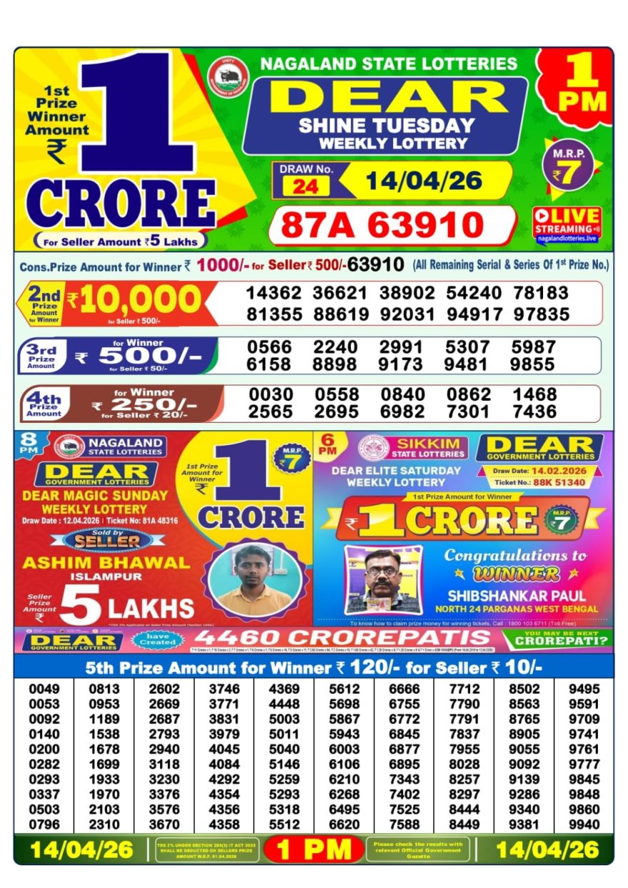Dear lottery 1 PM Results 14.04.2026 14.04.2026 Leave a Comment on Dear lottery 1 PM Results 14.04.2026 Share: XFacebookPinterestLinkedin