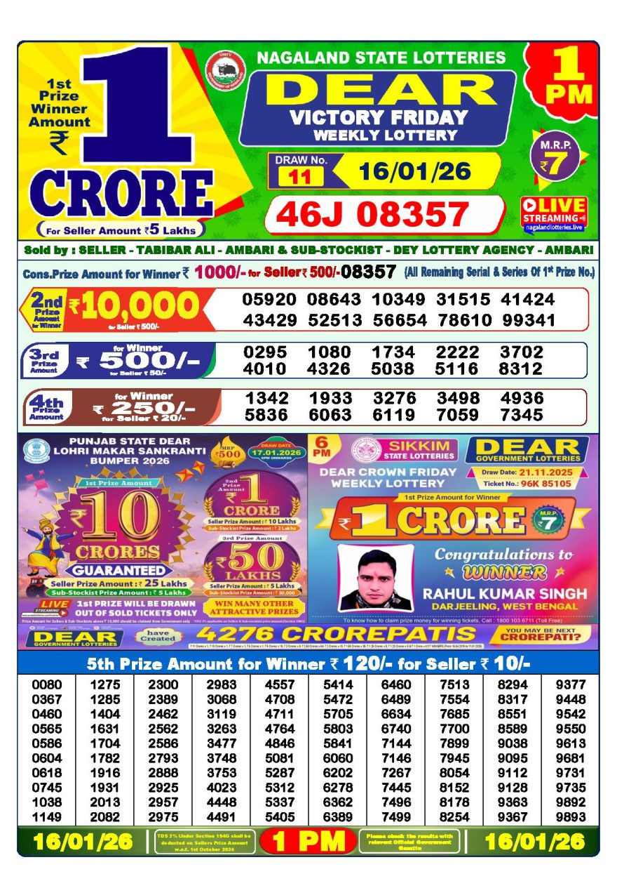 Dear lottery 1 PM Results 16.01.2026 16.01.2026 Leave a Comment on Dear lottery 1 PM Results 16.01.2026 Share: XFacebookPinterestLinkedin