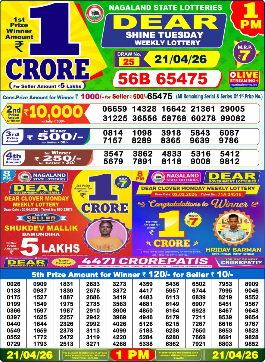 Dear lottery 1 PM Results 21.04.2026 21.04.2026 Leave a Comment on Dear lottery 1 PM Results 21.04.2026 Share: XFacebookPinterestLinkedin