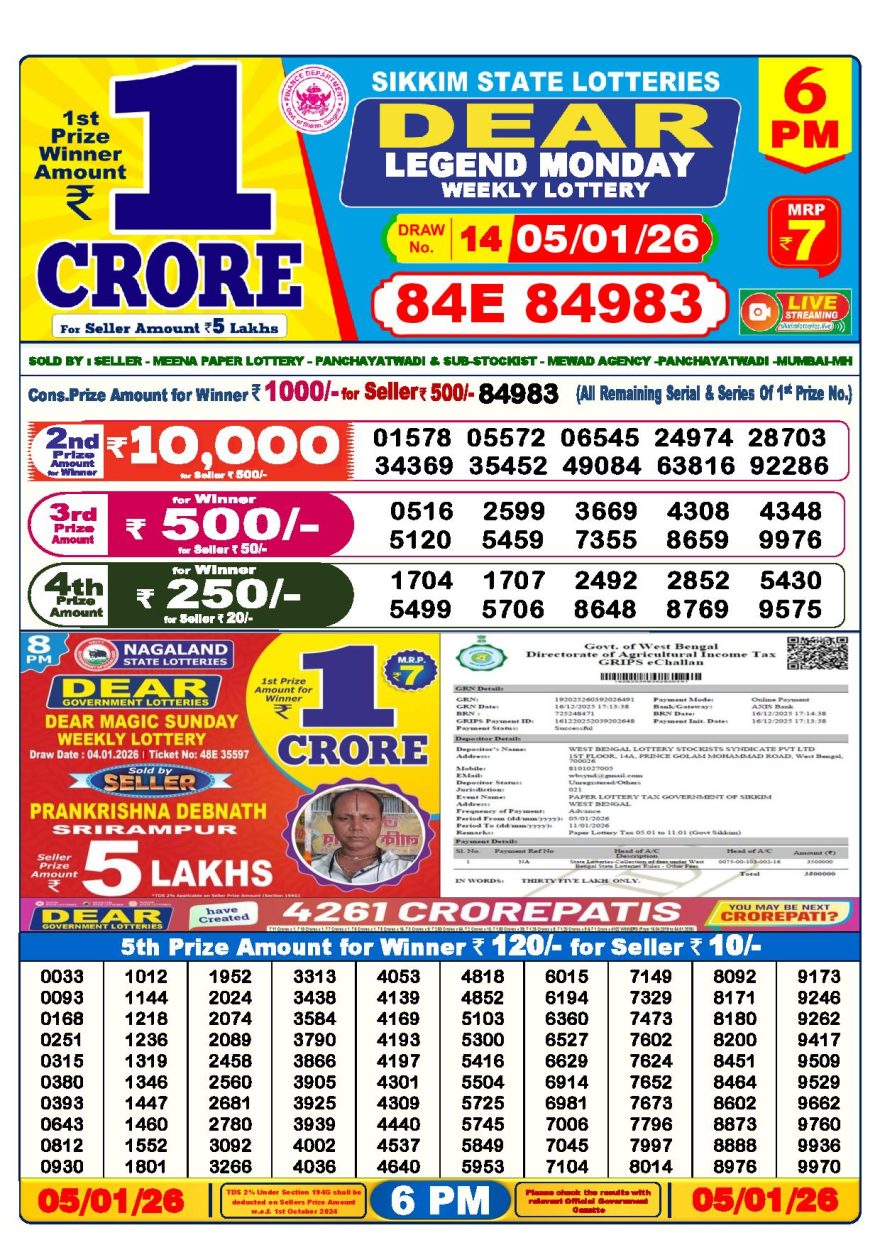 Dear lottery 6 PM Results 05.01.2026 05.01.2026 Leave a Comment on Dear lottery 6 PM Results 05.01.2026 Share: XFacebookPinterestLinkedin