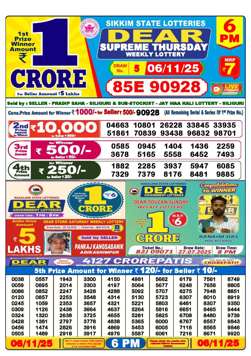 Dear lottery 6 PM Results 06.11.2025 06.11.2025 Leave a Comment on Dear lottery 6 PM Results 06.11.2025 Share: XFacebookPinterestLinkedin