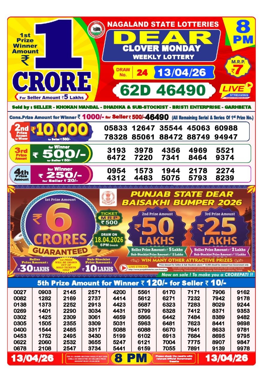 Dear lottery 8 PM Results 13.04.2026 13.04.2026 Leave a Comment on Dear lottery 8 PM Results 13.04.2026 Share: XFacebookPinterestLinkedin