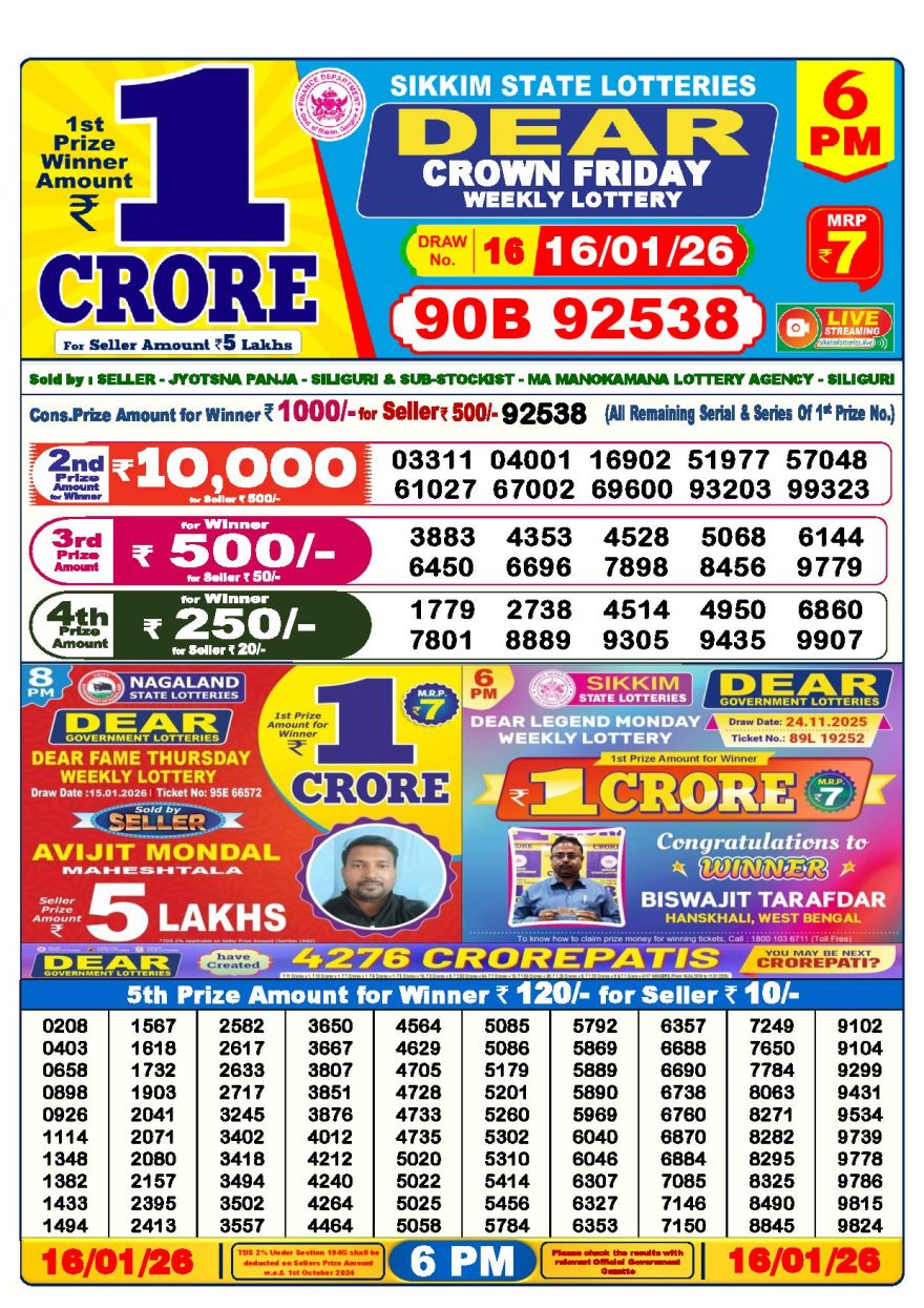 Dear lottery 6 PM Results 16.01.2026 16.01.2026 Leave a Comment on Dear lottery 6 PM Results 16.01.2026 Share: XFacebookPinterestLinkedin