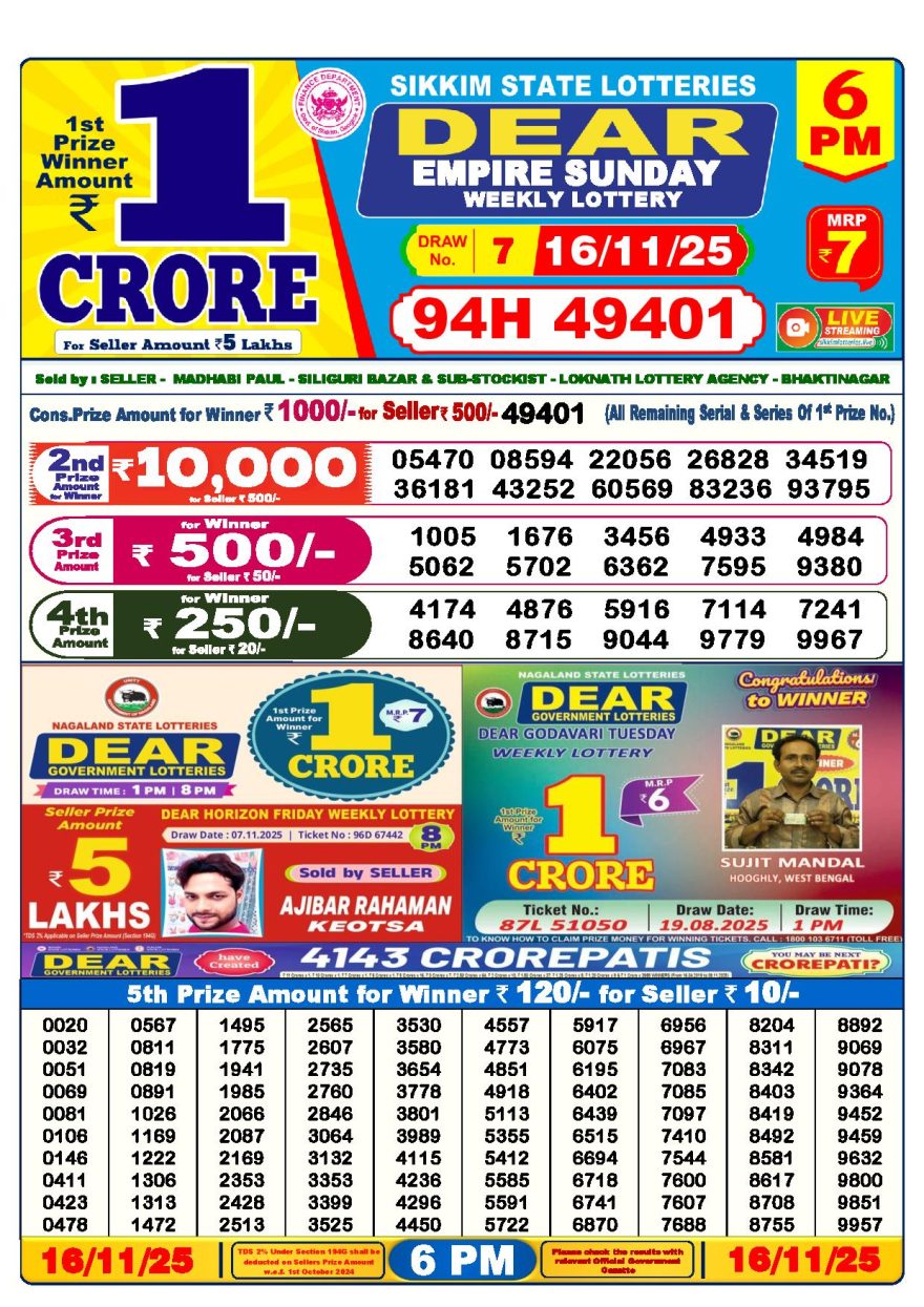 Dear lottery 6 PM Results 16.11.2025 16.11.2025 Leave a Comment on Dear lottery 6 PM Results 16.11.2025 Share: XFacebookPinterestLinkedin