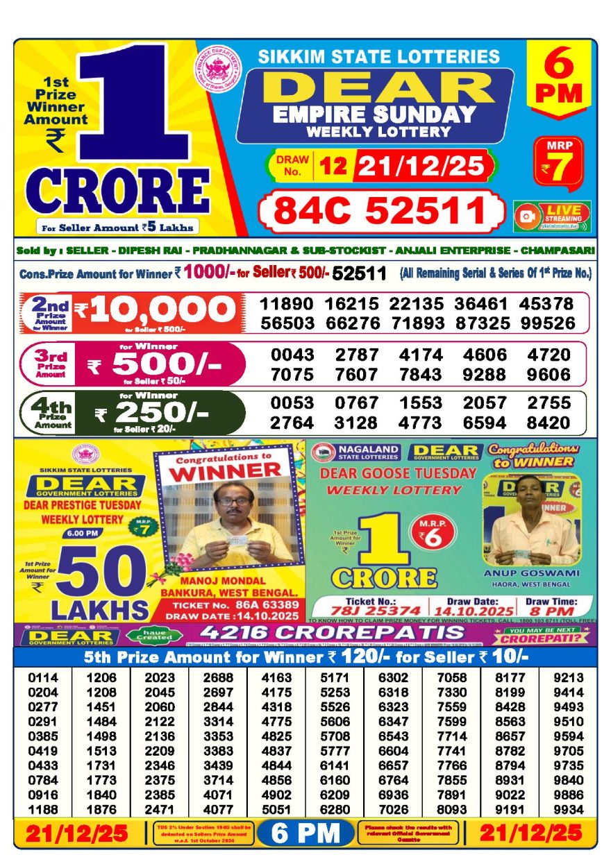 Dear lottery 6 PM Results 21.12.2025 21.12.2025 Leave a Comment on Dear lottery 6 PM Results 21.12.2025 Share: XFacebookPinterestLinkedin