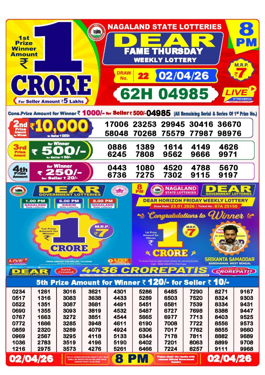 Dear lottery 8 PM Results 02.04.2026 02.04.2026 Leave a Comment on Dear lottery 8 PM Results 02.04.2026 Share: XFacebookPinterestLinkedin
