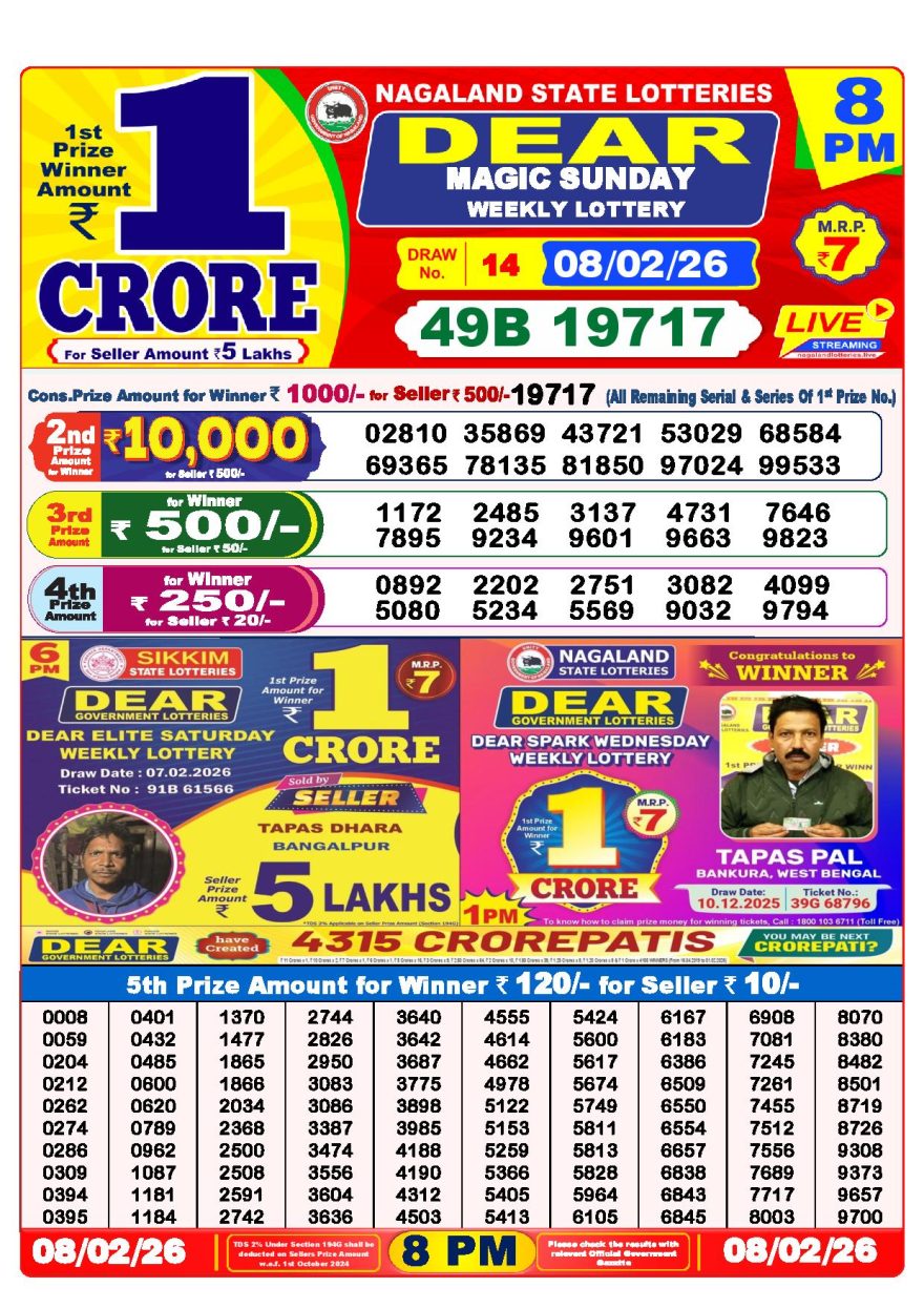 Dear lottery 8 PM Results 08.02.2026 08.02.2026 Leave a Comment on Dear lottery 8 PM Results 08.02.2026 Share: XFacebookPinterestLinkedin