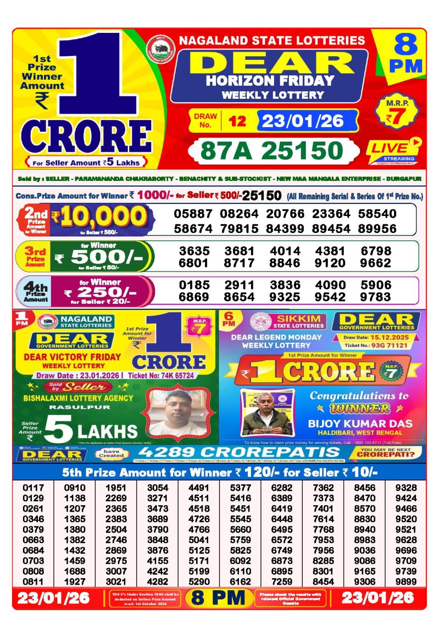 Dear lottery 8 PM Results 23.01.2026 23.01.2026 Leave a Comment on Dear lottery 8 PM Results 23.01.2026 Share: XFacebookPinterestLinkedin