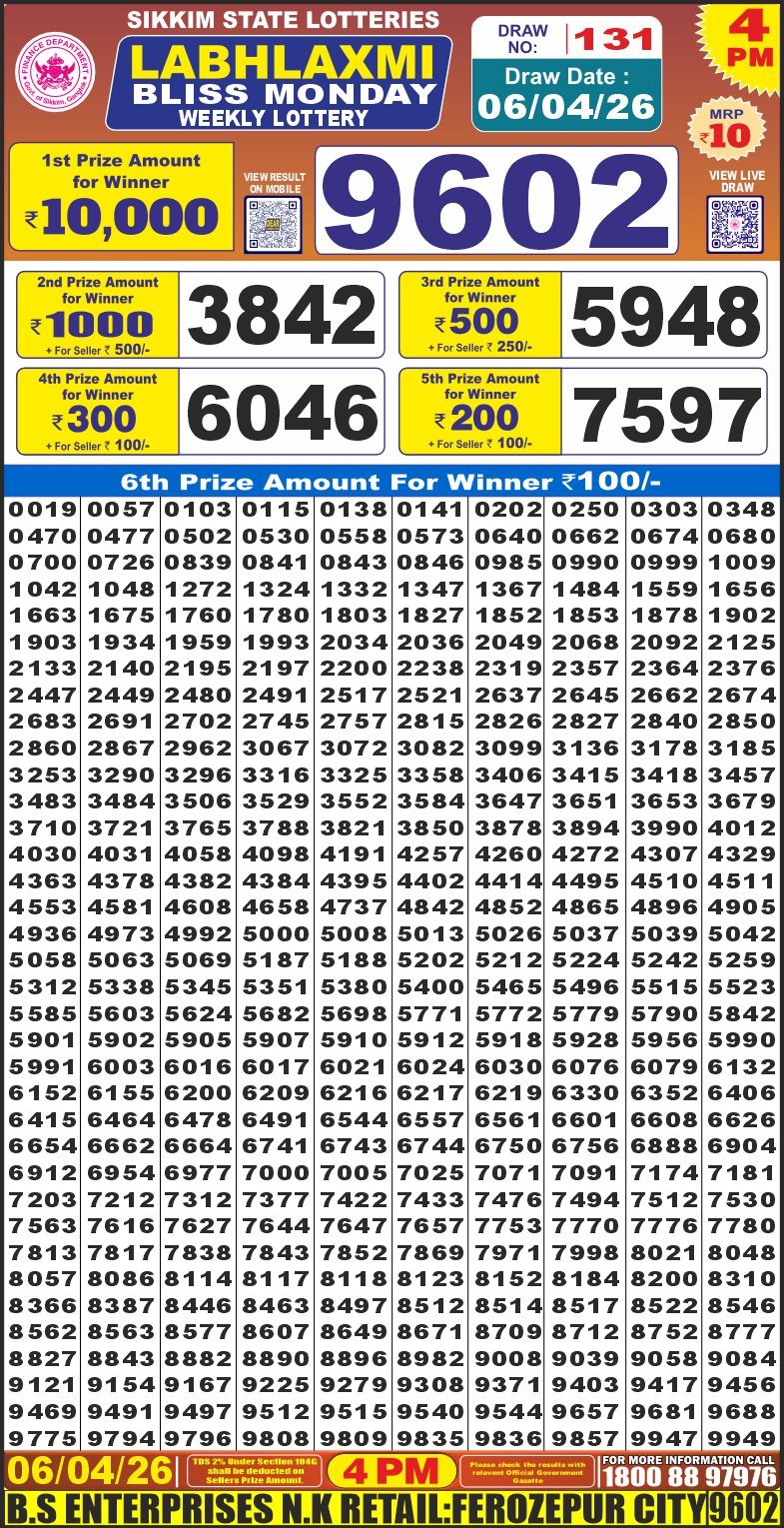 Labh laxmi Lottery Result 06.04.2026 4PM 06.04.2026 Leave a Comment on Labh laxmi Lottery Result 06.04.2026 4PM Share: XFacebookPinterestLinkedin