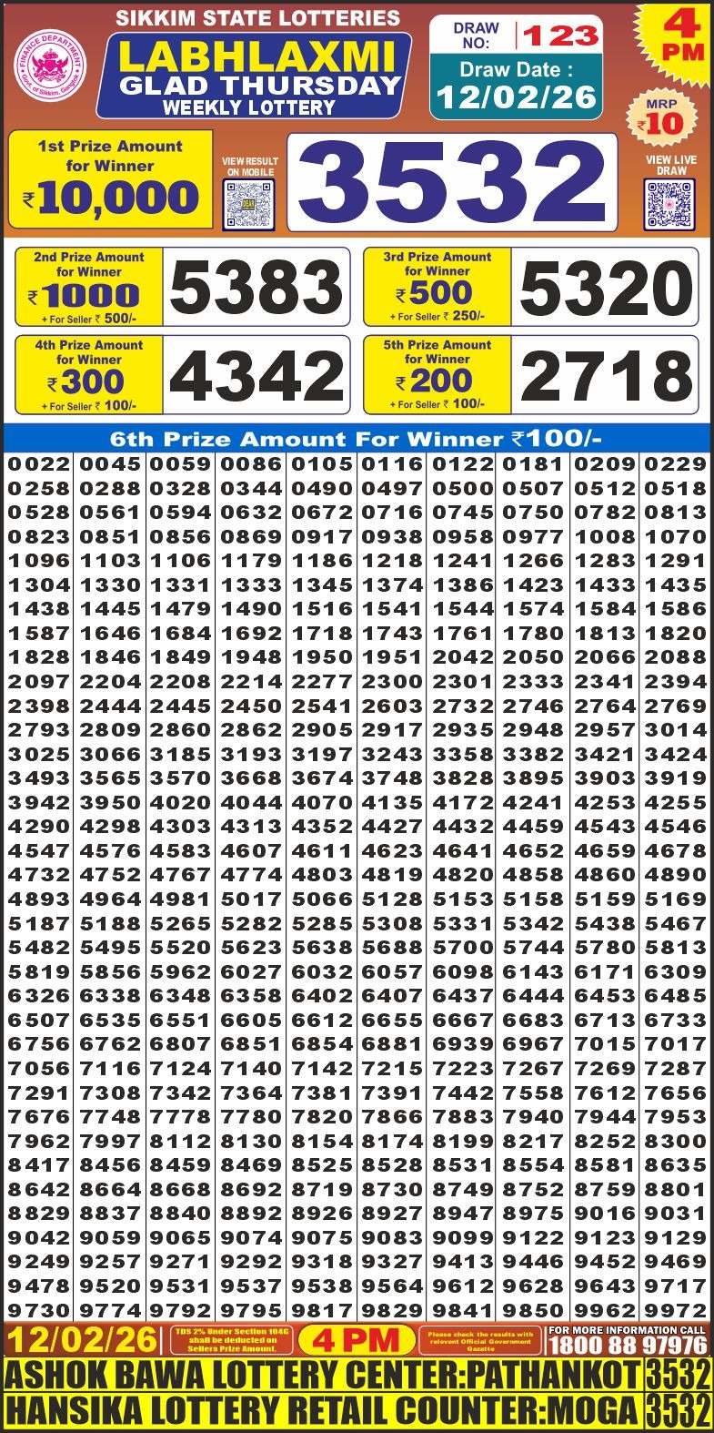 Labh laxmi Lottery Result 12.02.2026 4PM 12.02.2026 Leave a Comment on Labh laxmi Lottery Result 12.02.2026 4PM Share: XFacebookPinterestLinkedin