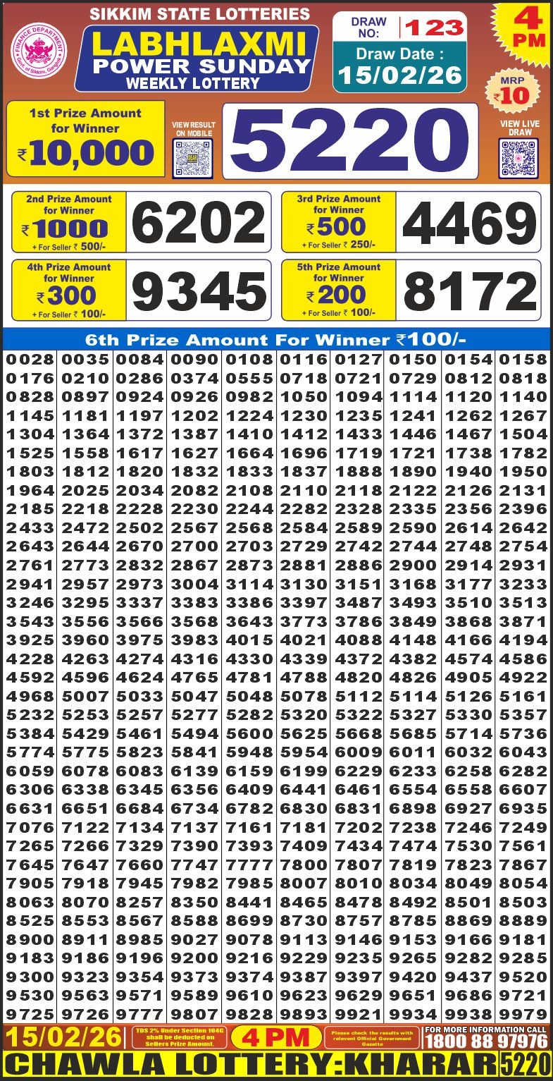 Labh laxmi Lottery Result 15.02.2026 4PM 15.02.2026 Leave a Comment on Labh laxmi Lottery Result 15.02.2026 4PM Share: XFacebookPinterestLinkedin