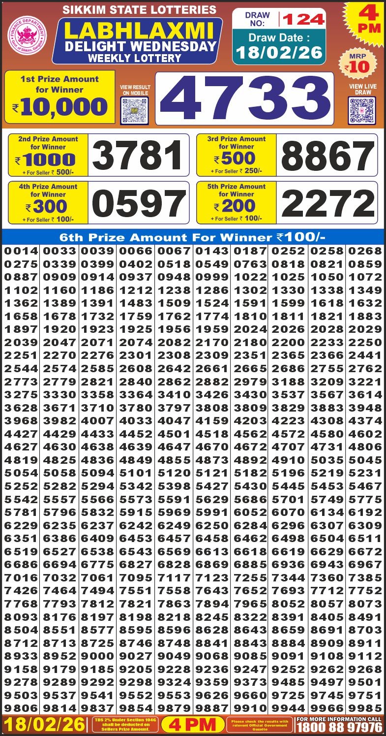 Labh laxmi Lottery Result 18.02.2026 4PM 18.02.2026 Leave a Comment on Labh laxmi Lottery Result 18.02.2026 4PM Share: XFacebookPinterestLinkedin