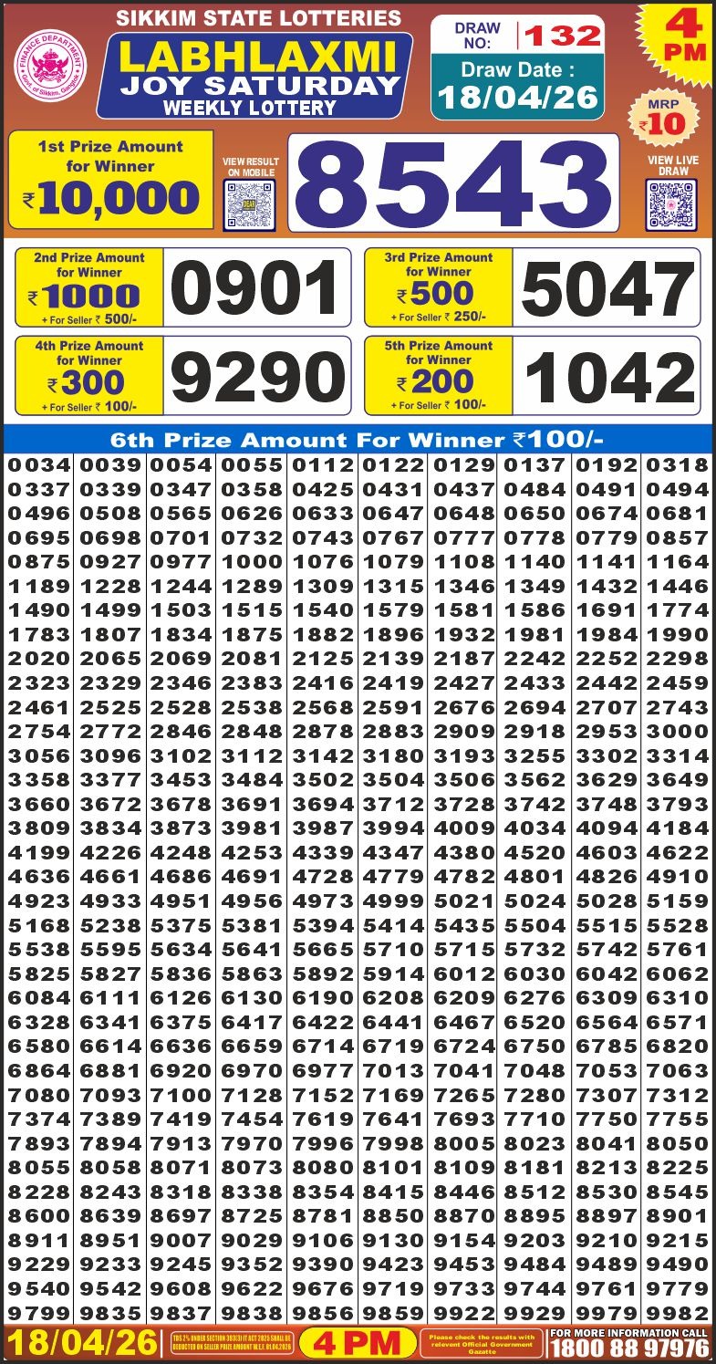 Labh laxmi Lottery Result 18.04.2026 4PM 18.04.2026 Leave a Comment on Labh laxmi Lottery Result 18.04.2026 4PM Share: XFacebookPinterestLinkedin