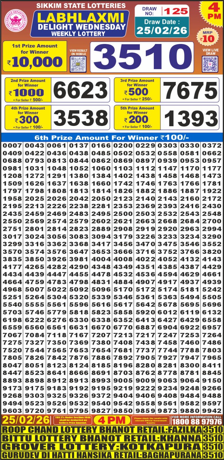 Labh laxmi Lottery Result 25.02.2026 4PM 25.02.2026 Leave a Comment on Labh laxmi Lottery Result 25.02.2026 4PM Share: XFacebookPinterestLinkedin