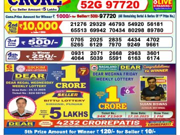 Dear lottery 1 PM Results 26.12.2025
