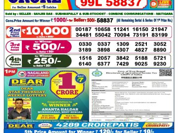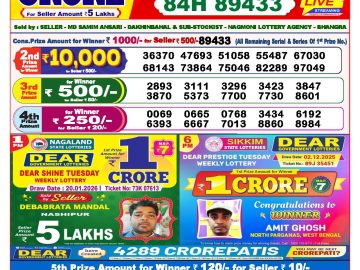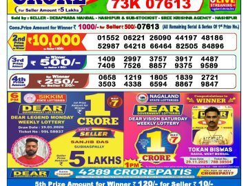 Dear lottery 6 PM Results 19.01.2026