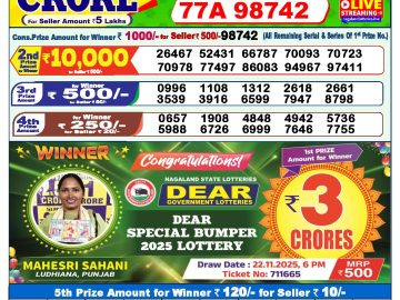 Dear lottery 6 PM Results 07.01.2026