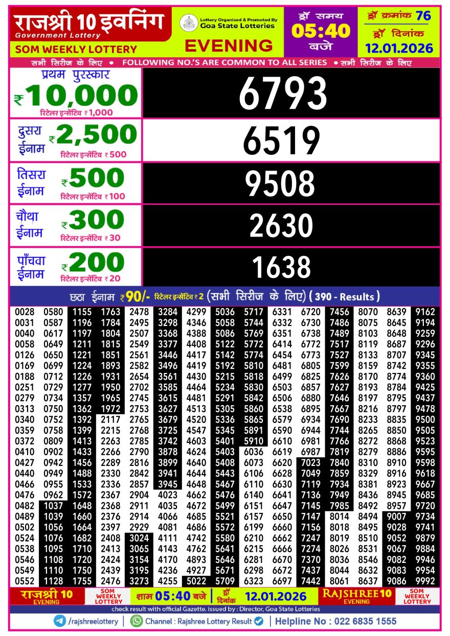 Rajshree 10 Evening lottery 05.40 PM 12.01.2026 12.01.2026 Leave a Comment on Rajshree 10 Evening lottery 05.40 PM 12.01.2026 Share: XFacebookPinterestLinkedin