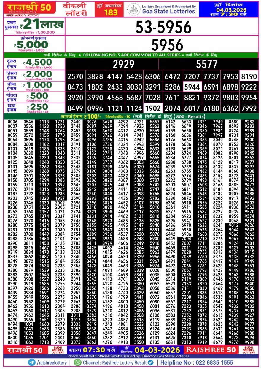 Rajshree 50 Budh Weekly lottery 07.30PM 04.03.2026 04.03.2026 Leave a Comment on Rajshree 50 Budh Weekly lottery 07.30PM 04.03.2026 Share: XFacebookPinterestLinkedin