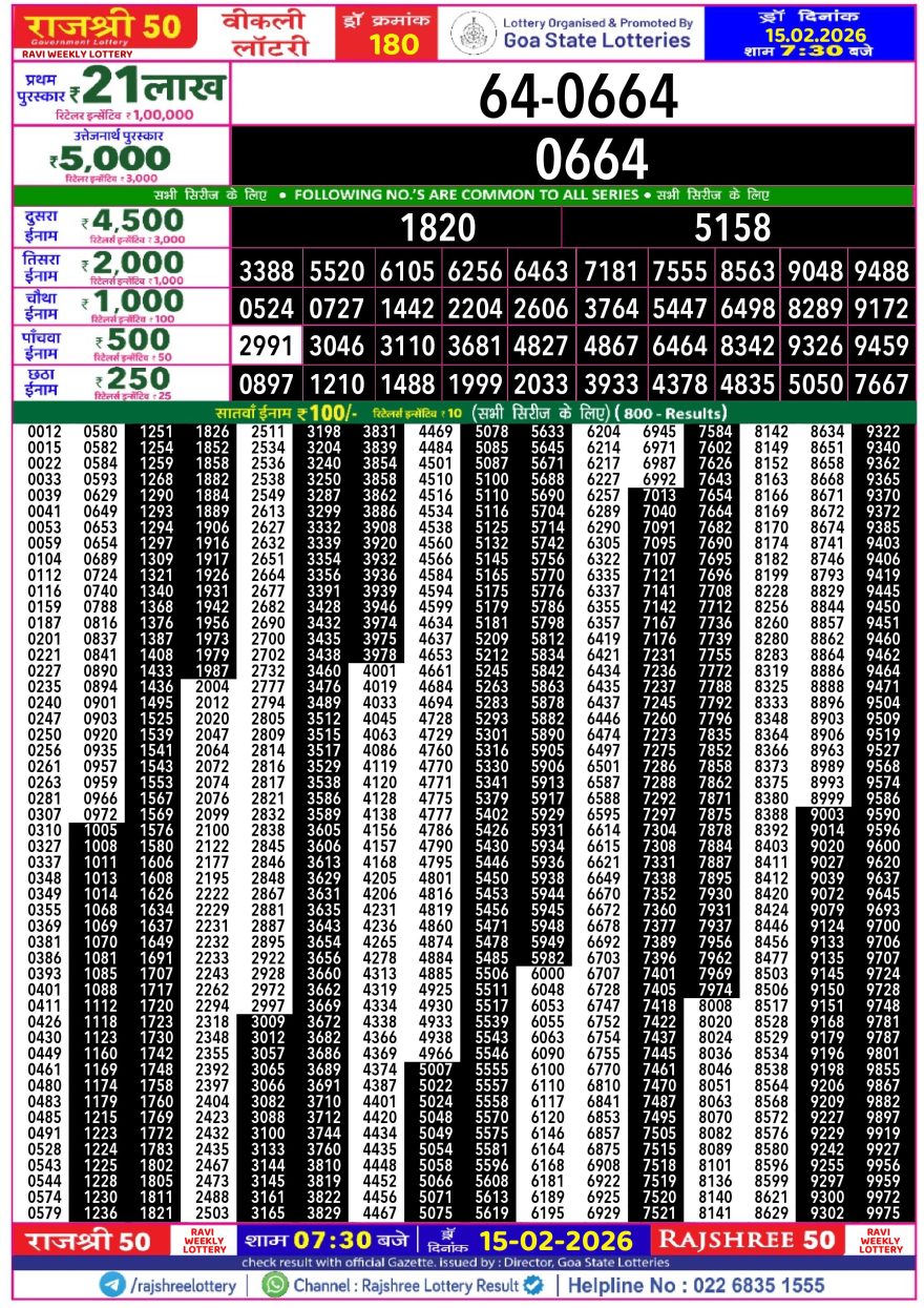 Rajshree 50 Ravi Weekly lottery 07.30PM 15.02.2026 15.02.2026 Leave a Comment on Rajshree 50 Ravi Weekly lottery 07.30PM 15.02.2026 Share: XFacebookPinterestLinkedin