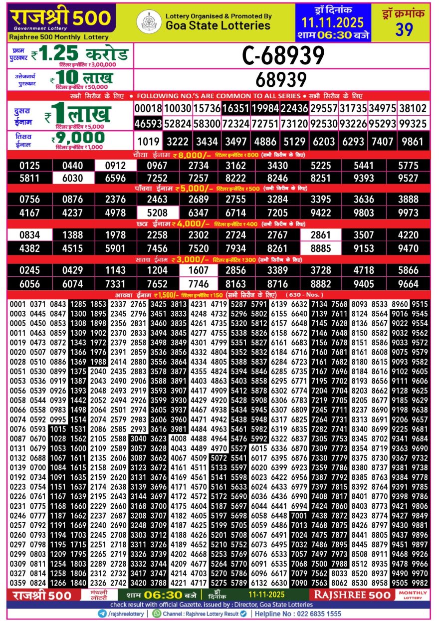 Rajshree 500 Monthly lottery 08.00PM 11.11.2025 11.11.2025 Leave a Comment on Rajshree 500 Monthly lottery 08.00PM 11.11.2025 Share: XFacebookPinterestLinkedin