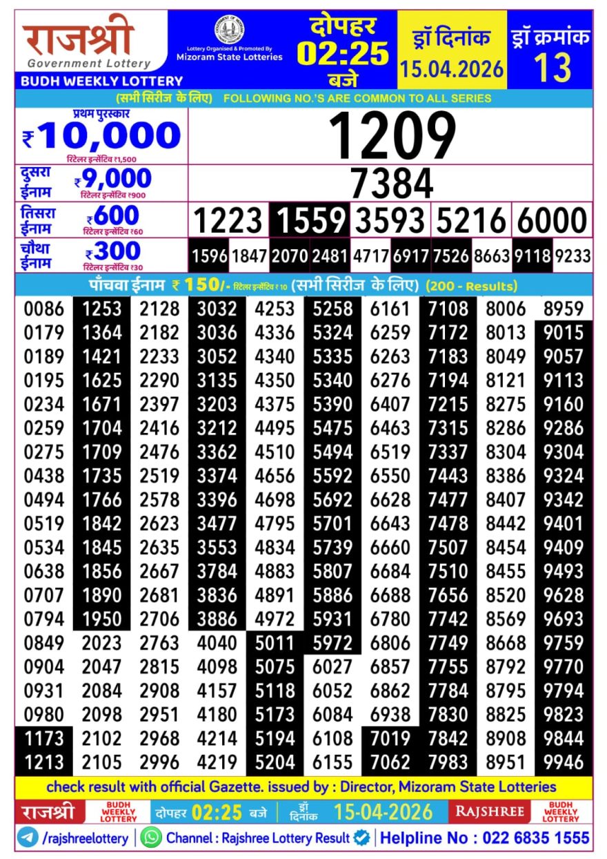 Rajshree Budh lottery 02:25 PM 15.04.2026 15.04.2026 Leave a Comment on Rajshree Budh lottery 02:25 PM 15.04.2026 Share: XFacebookPinterestLinkedin