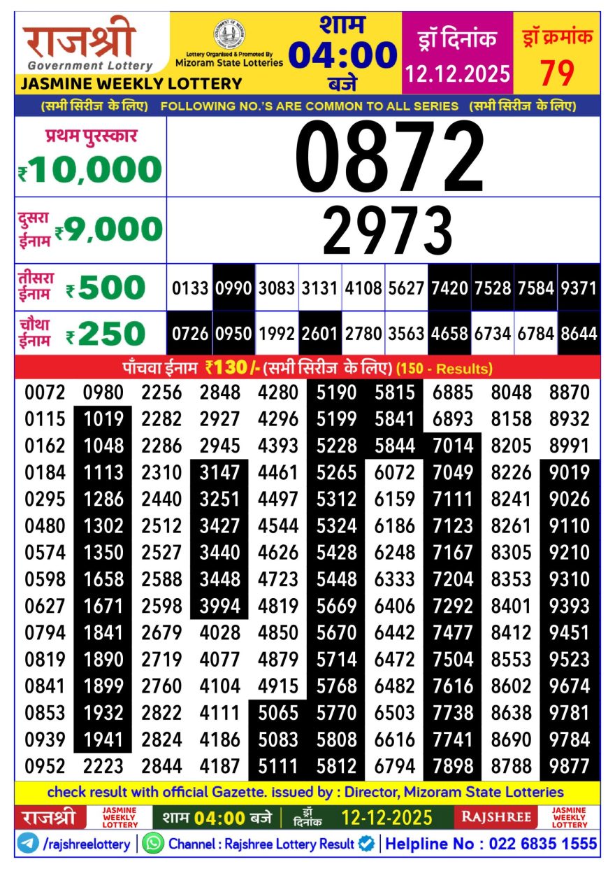 Rajshree Jasmine lottery 04:00 PM 12.12.2025 12.12.2025 Leave a Comment on Rajshree Jasmine lottery 04:00 PM 12.12.2025 Share: XFacebookPinterestLinkedin