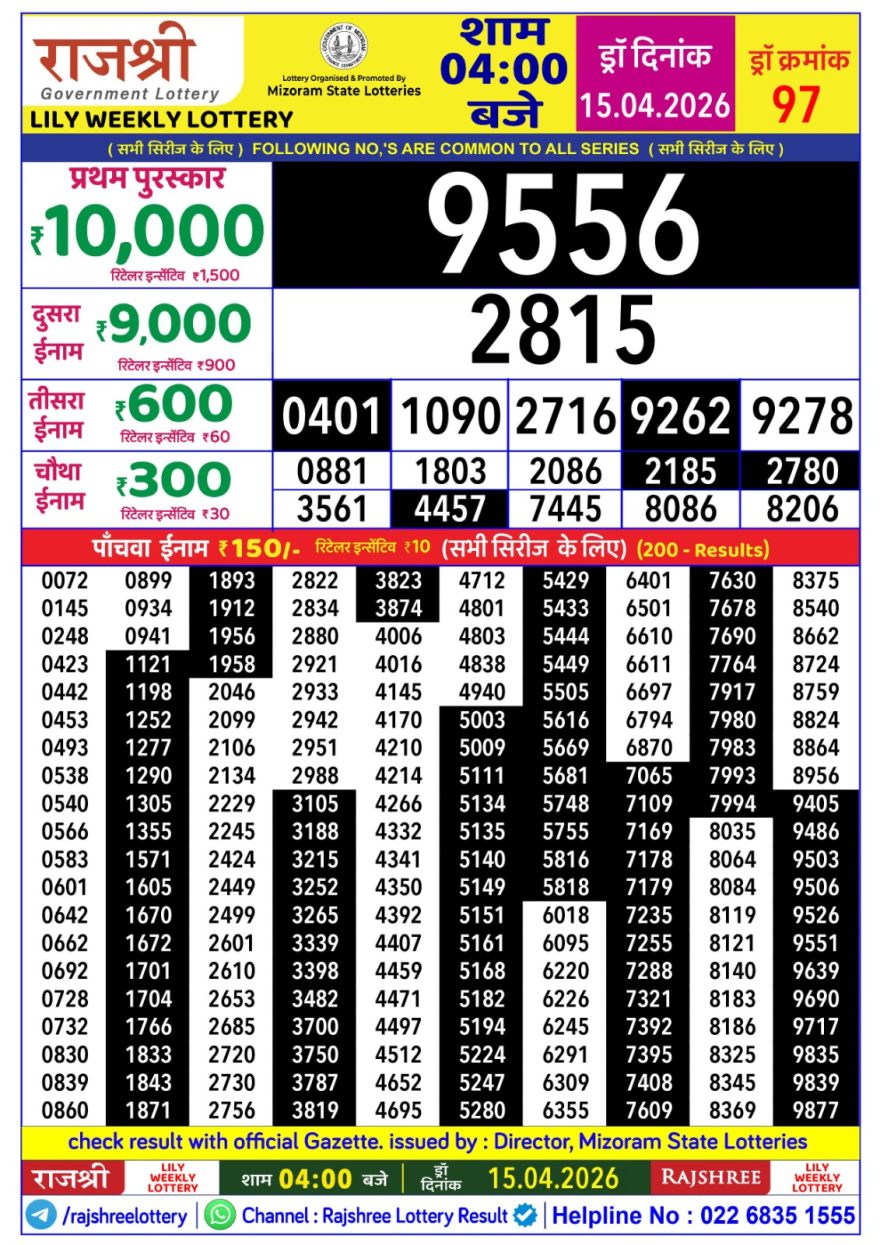 Rajshree Lily lottery 04:00 PM 15.04.2026 15.04.2026 Leave a Comment on Rajshree Lily lottery 04:00 PM 15.04.2026 Share: XFacebookPinterestLinkedin