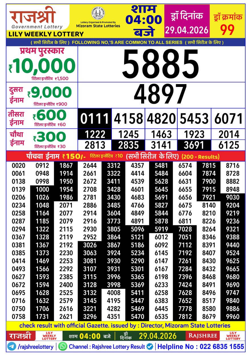 Rajshree Lily lottery 04:00 PM 29.04.2026 29.04.2026 Leave a Comment on Rajshree Lily lottery 04:00 PM 29.04.2026 Share: XFacebookPinterestLinkedin