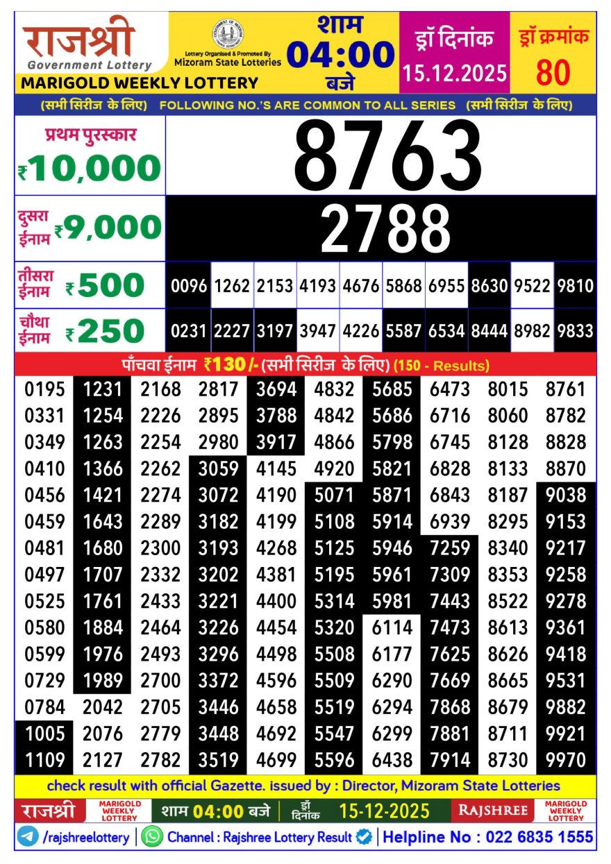 Rajshree Marigold lottery 04:00 PM 15.12.2025 15.12.2025 Leave a Comment on Rajshree Marigold lottery 04:00 PM 15.12.2025 Share: XFacebookPinterestLinkedin