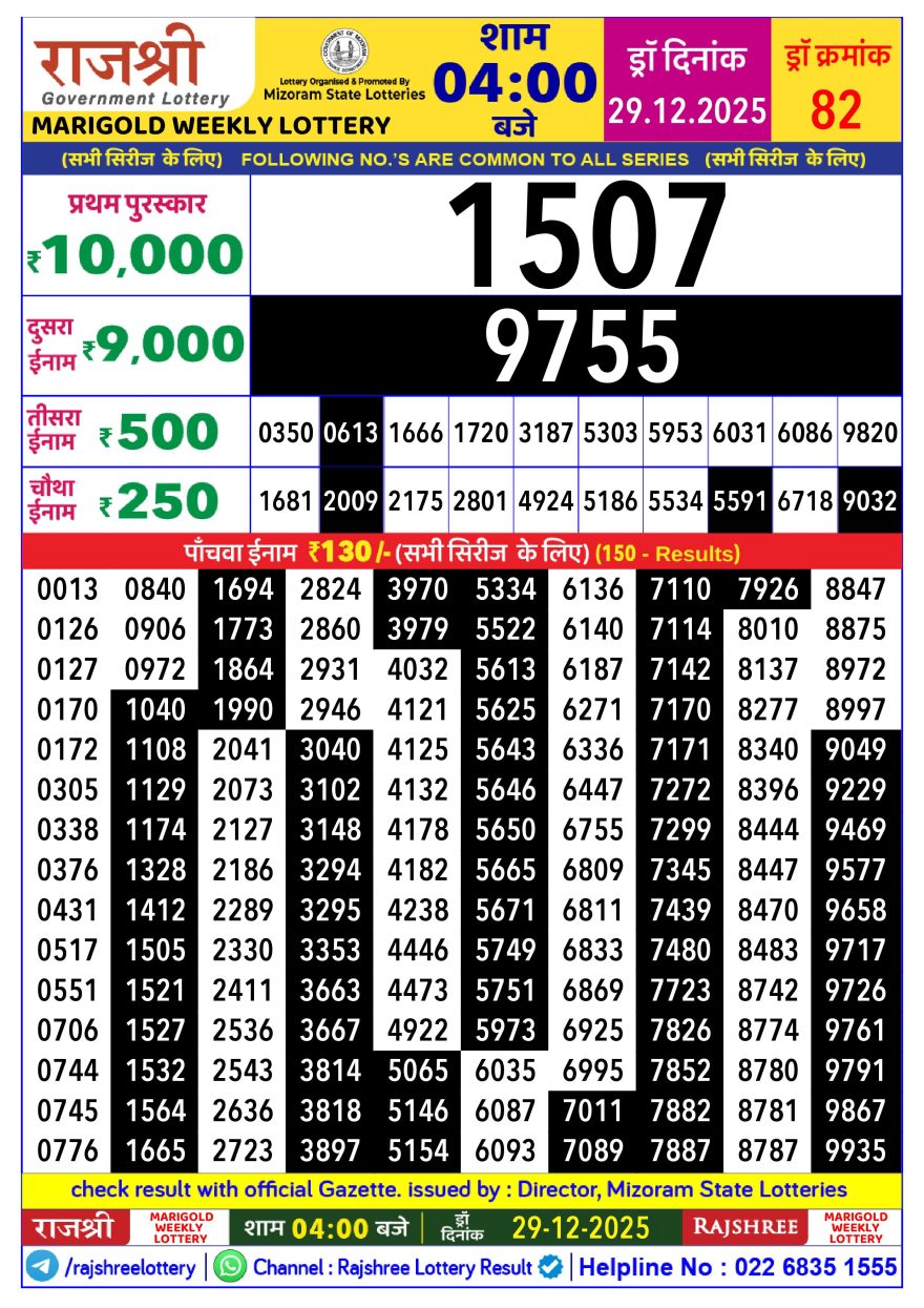 Rajshree Marigold lottery 04:00 PM 29.12.2025 29.12.2025 Leave a Comment on Rajshree Marigold lottery 04:00 PM 29.12.2025 Share: XFacebookPinterestLinkedin