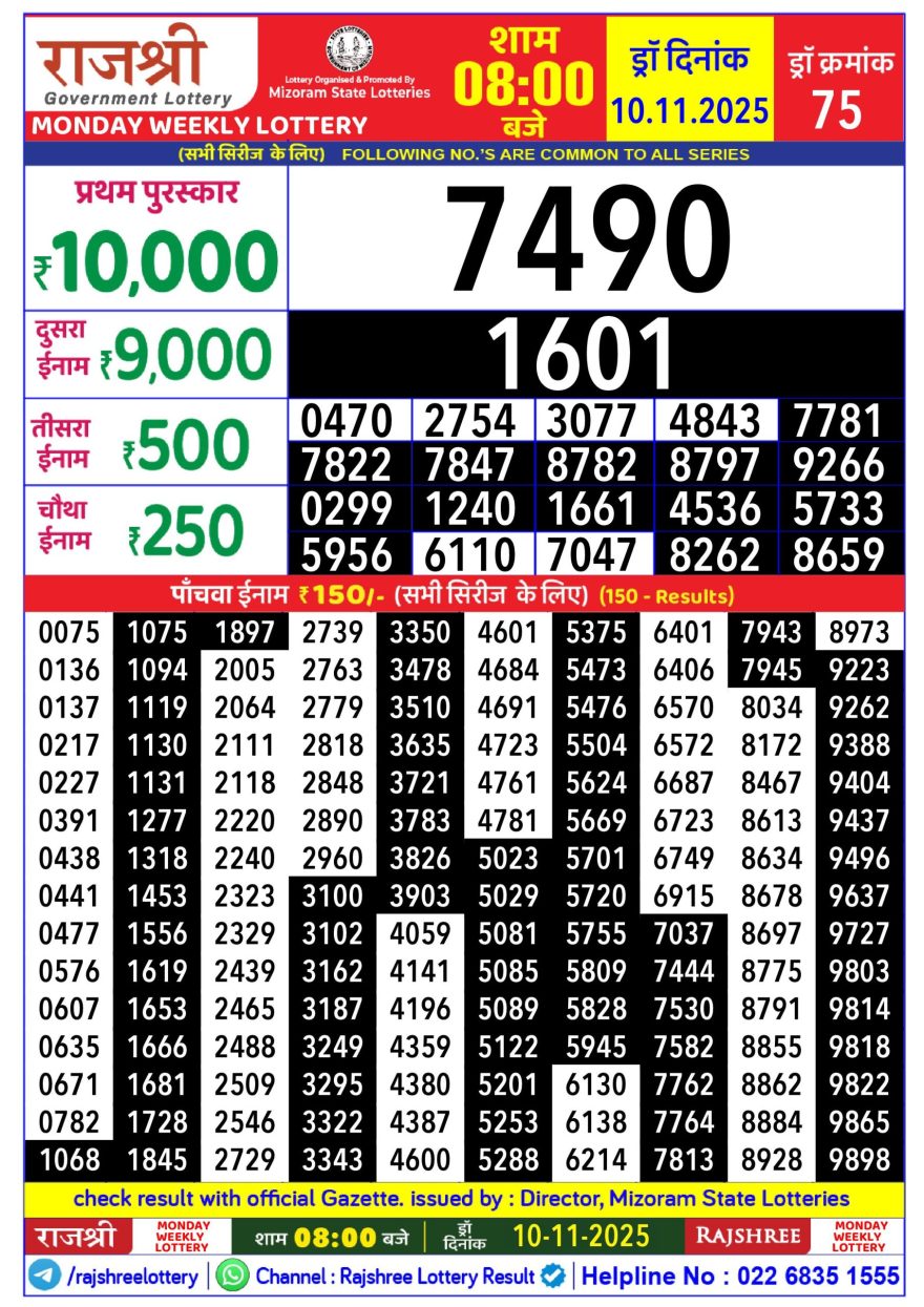 Rajshree Monday Weekly lottery 08.00PM 10.11.2025 10.11.2025 Leave a Comment on Rajshree Monday Weekly lottery 08.00PM 10.11.2025 Share: XFacebookPinterestLinkedin