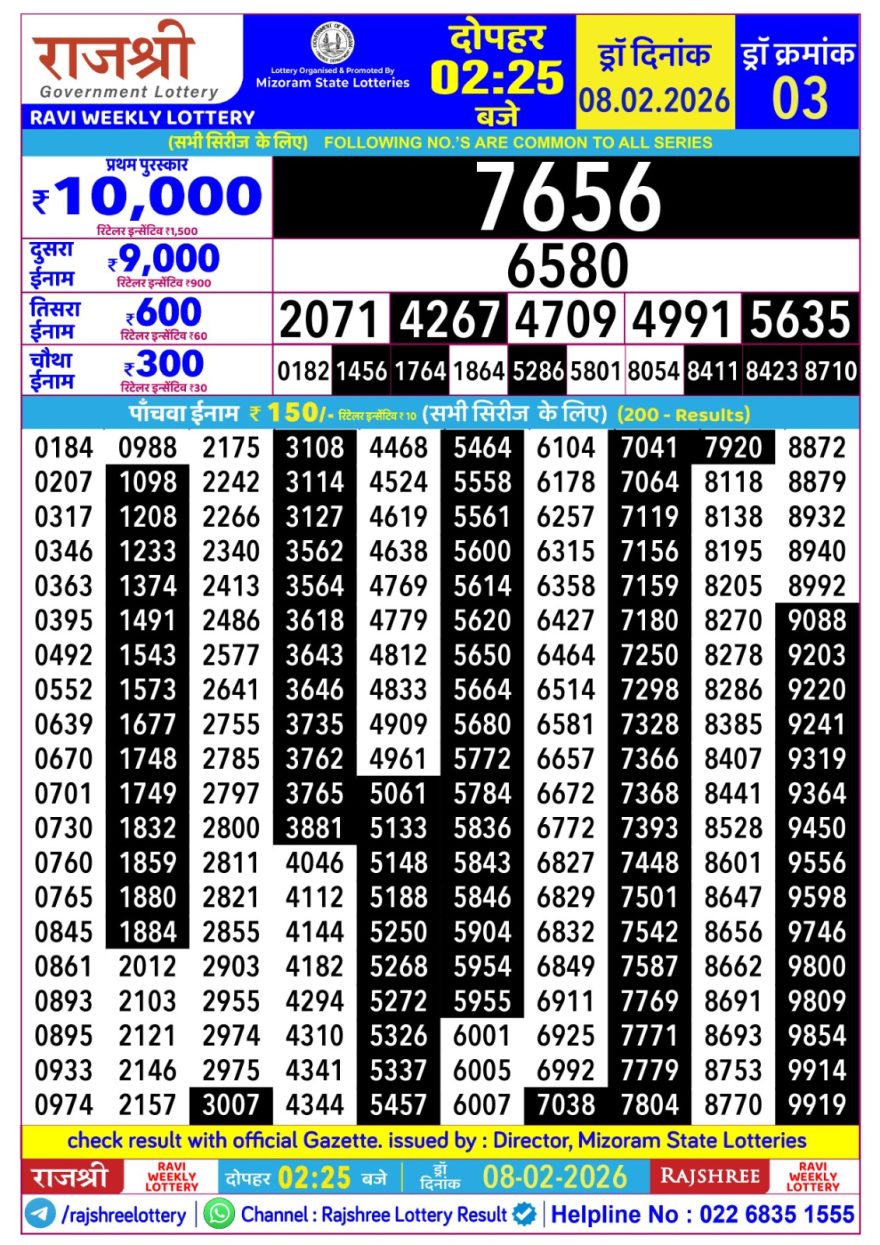 Rajshree Ravi lottery 02:25 PM 08.02.2026 08.02.2026 Leave a Comment on Rajshree Ravi lottery 02:25 PM 08.02.2026 Share: XFacebookPinterestLinkedin