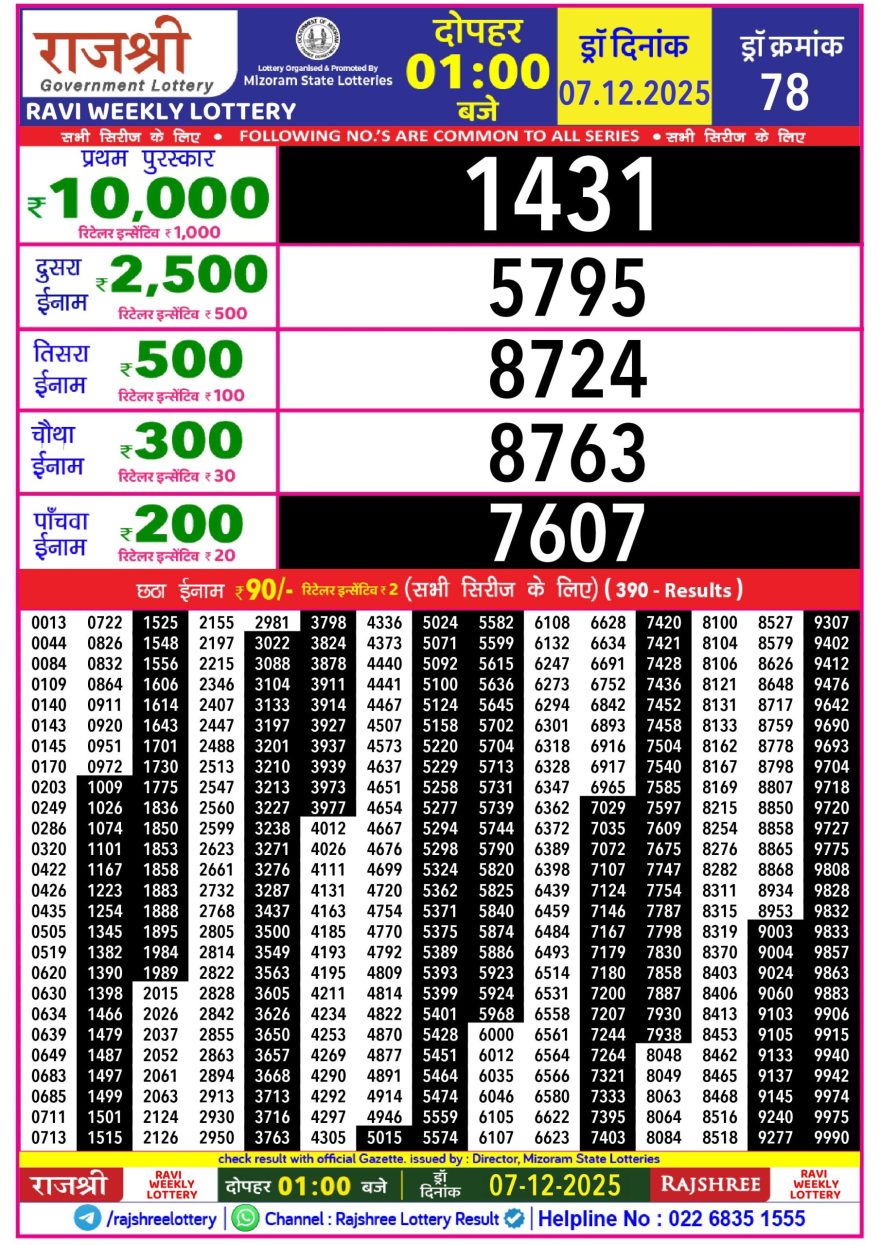 Rajshree Ravi lottery 1 PM 07.12.2025 07.12.2025 Leave a Comment on Rajshree Ravi lottery 1 PM 07.12.2025 Share: XFacebookPinterestLinkedin