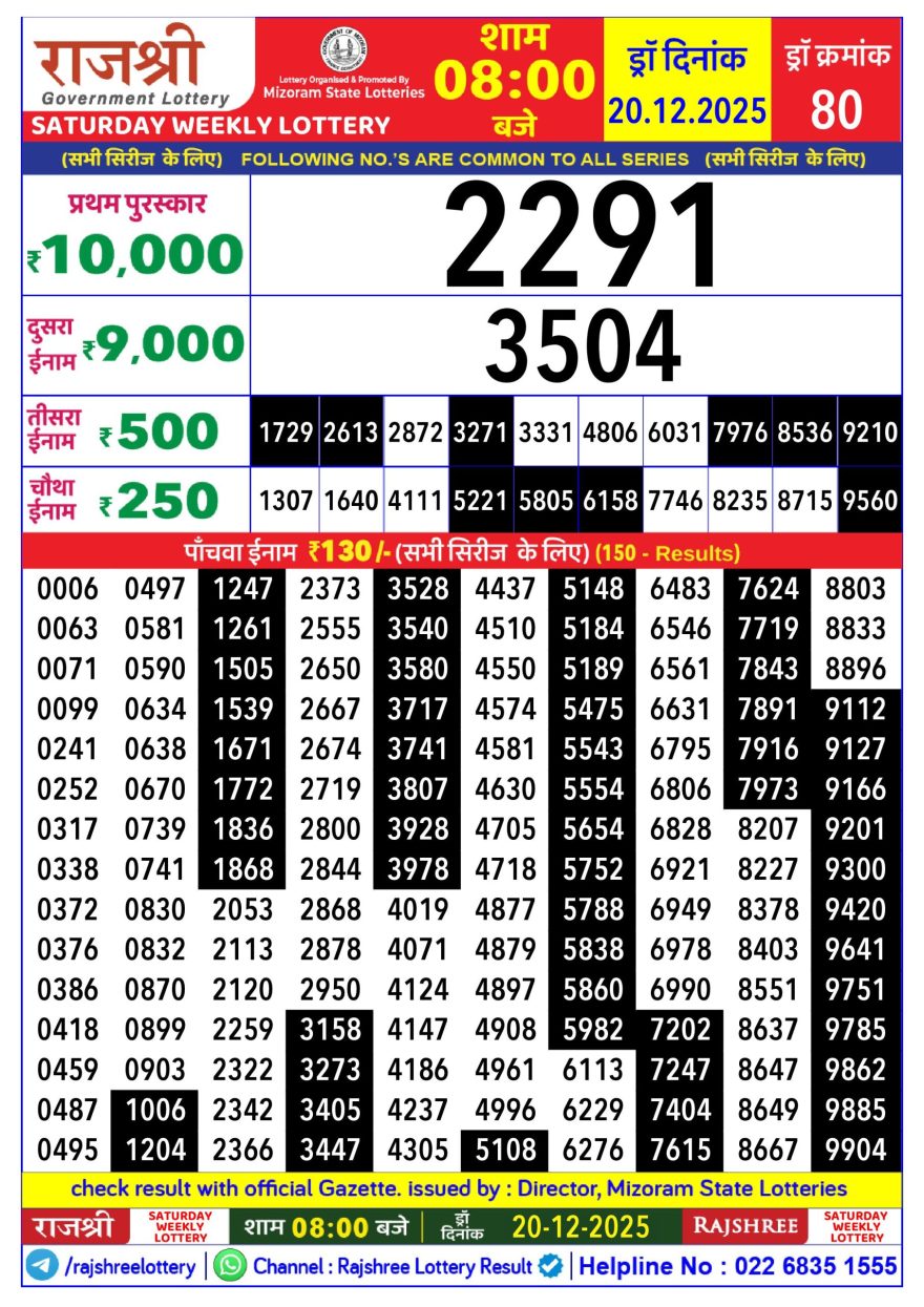 Rajshree Saturday Weekly lottery 08.00PM 20.12.2025 20.12.2025 Leave a Comment on Rajshree Saturday Weekly lottery 08.00PM 20.12.2025 Share: XFacebookPinterestLinkedin