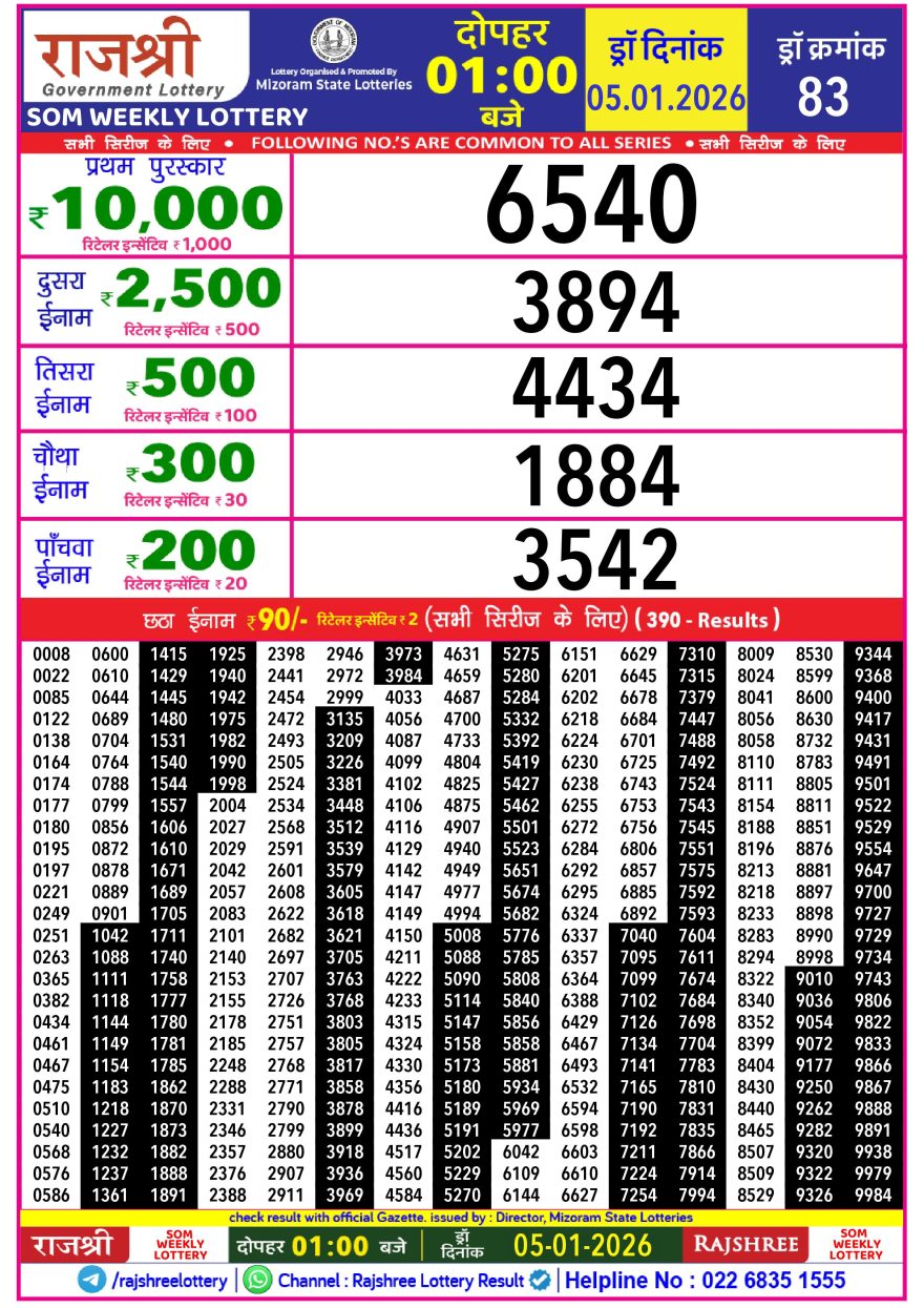 Rajshree Som lottery 1 PM 05.01.2026 05.01.2026 Leave a Comment on Rajshree Som lottery 1 PM 05.01.2026 Share: XFacebookPinterestLinkedin