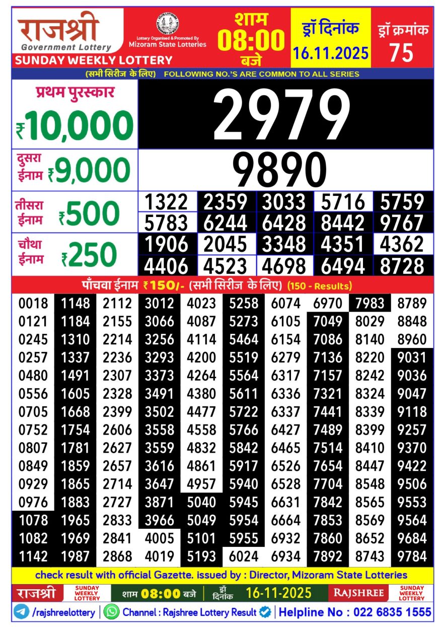 Rajshree Sunday Weekly lottery 08.00PM 16.11.2025 16.11.2025 Leave a Comment on Rajshree Sunday Weekly lottery 08.00PM 16.11.2025 Share: XFacebookPinterestLinkedin
